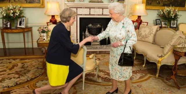 Официально церемония, посредством которой назначили Мэй, называется "целование рук", но в реальности премьер-министры руку монарху уже не целуют, а только изображают поцелуй, не прикасаясь к руке губами.