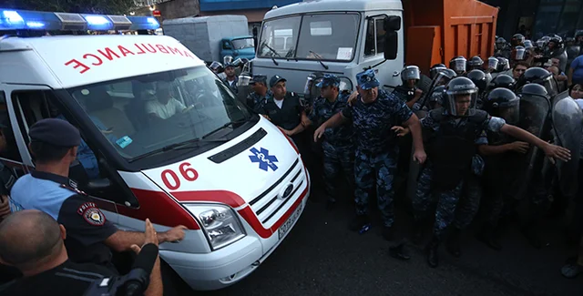 "Правоохранители предложили оказать им медицинскую помощь и получили отказ. Родные раненых также призвали перевести их в медучреждение. Правоохранители обеспечили все необходимые условия. Но когда врачи прибыли (в полк ППС, – ред.), их взяли в заложники", - сообщил Агаронян.