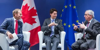 Канадский премьер-министр Джастин Трюдо, а также представители Евросоюза – председатель Евросовета Дональд Туск и глава Еврокомиссии Жан-Клод Юнкер – подписали в воскресенье, 30 октября, в Брюсселе соглашение о торгово-экономическом сотрудничестве между ЕС и Канадой (CETA). Об этом сообщает Deutsche Welle.
