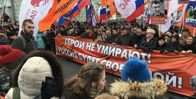В Москве несколько десятков тысяч россиян вышли на Марш памяти российского политика Бориса Немцова. Об этом сообщает Новая газета.