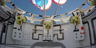 На высоте 8,5 тыс. метров сработали первые два парашюта собственной парашютной системы Starliner. Они отвечают за стабилизацию космического корабля и начальное торможение. Они должны замедлять падение аппарата до скорости, на которой могут быть выпущены основные парашюты.