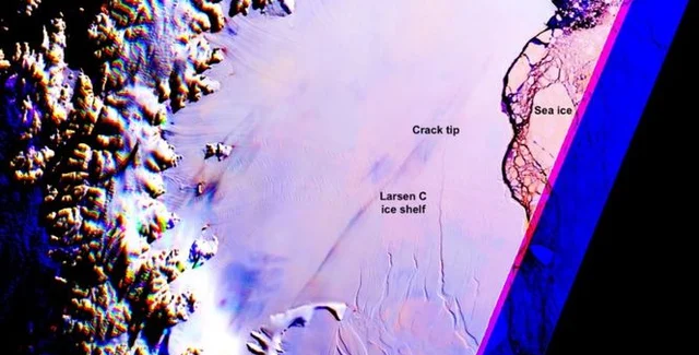 Судя по данным со спутника ЕКА Sentinel-1, в период с 24 по 28 июня скорость разрыва увеличилась втрое. Ученые отслеживали растущую трещину в леднике Ларсена начиная с 2014 года. В начале декабря 2016 года трещина была примерно 112 км в длину. Шесть недель спустя, этот показатель достиг 175 км в длину и продолжает увеличиваться. В мае в леднике появилась новая трещина, а основная прекратила увеличиваться в длину, зато растет по ширину.