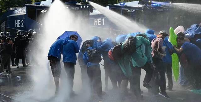 Полиция, в свою очередь, задействовала водометы для разгона протестующих у парка Альтер Эльб в Гамбурге. После применения техники часть протестующих разбежалась, а оставшиеся ведут себя мирно.