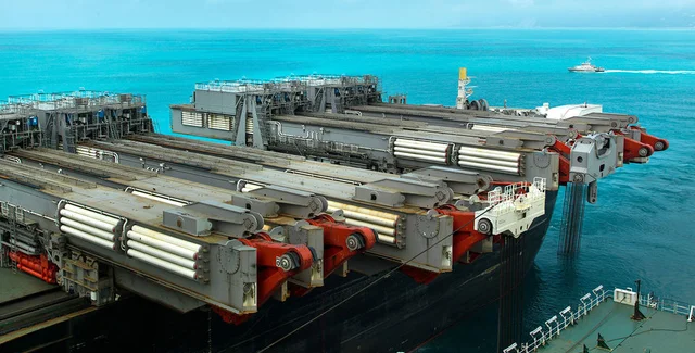Согласно данным Allseas Audacia может принять на борт до 14 000 тонн труб. Пополнением их запаса, по словам собеседника "Ведомостей", занимаются грузовые корабли Highland Navigator (грузоподъемность – 3300 т) и Baccara (3000 т). По данным marinetraffic.com, с вечера 17 июля до вечера 18 июля они совершили два рейса от порта Анапы до Audacia, некоторое время сопровождали ее на маршруте и вернулись обратно.