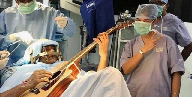 Житель Индии Абхишек Прасад сыграл на гитаре во время операции на мозге. Об этом сообщает Русская служба BBC.