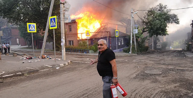 На протяжении нескольких сотен метров вдоль улиц стоят больше сотни людей с личными вещами, одеждой, ценной аппаратурой. Жители отходят все дальше от места пожара.