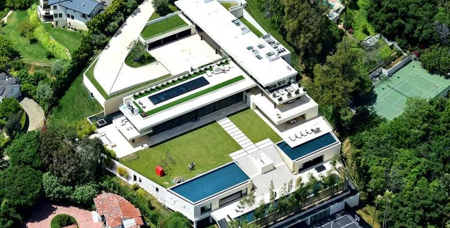 На вилле также есть спа и залы оздоровительных процедур, мини-кинотеатр и четыре открытых бассейна. Дом оборудован пуленепробиваемыми окнами.