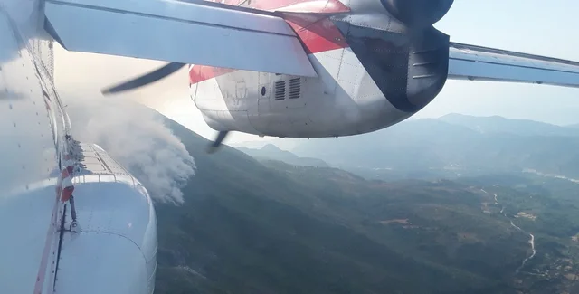 Ан-32П борется с огнем в горном районе к северу от села Абастумани