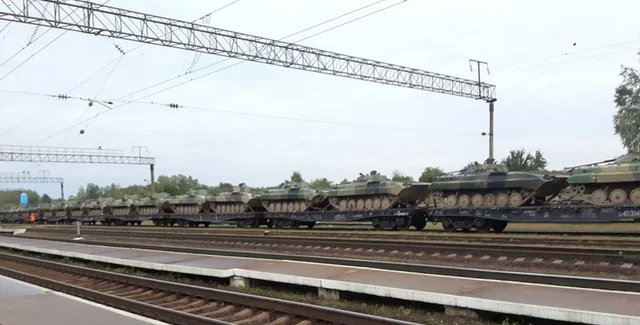 По их данным, 21 сентября на железнодорожной станции Верейцы находятся около 50 танков различной модификации, большинство из них уже загружены на платформы.