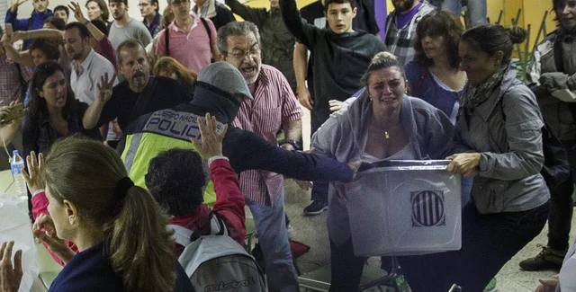 Испанская полиция и Гражданская гвардия пытаются припятствовать проведению референдума. Правоохранители изымают урны для голосования и бюллетени, выводят людей из избитаельных участков. Уже прошли первые стычки с протестующими. В соцсетях распространяются фото первых пострадавших.
