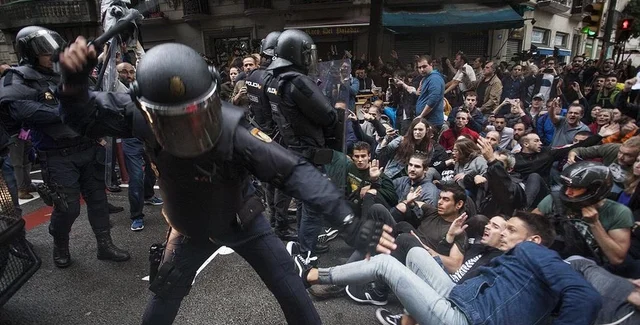 Напомним, сегодня в Каталонии проходит референдум о независимости. Испанская полиция и Гражданская гвардия пытаются припятствовать проведению референдума. Правоохранители изымают урны для голосования и бюллетени, выводя людей из избитаельных участков.