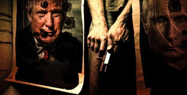 Также они опубликовали пропагандистский "постер" с простреленными головами президентов России и США.
