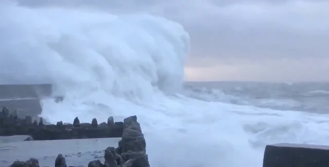 Сильный ветер и высокие волны из-за нового шторма достигли западного побережья Ирландии вечером 20 октября.