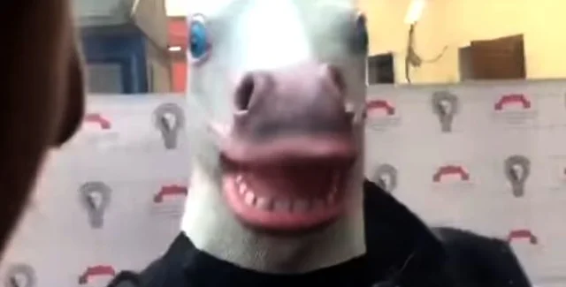 Во время пресс-конференции российской ведущей Ксении Собчак, посвященной ее президентским амбициям, в здание проник провокатор в образе белого единорога.