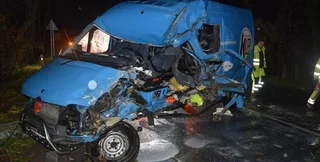 Микроавтобус выехал на встречную полосу и столкнулся с грузовиком