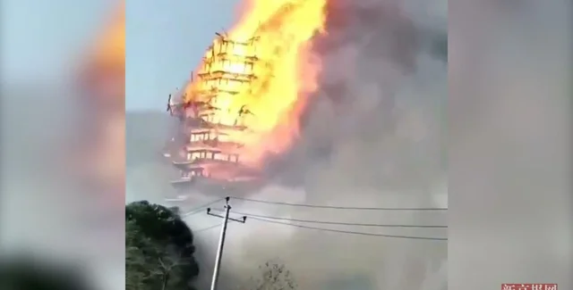 В китайской провинции Сычуань сгорела одна из старейших и самых высоких буддийских пагод в мире.