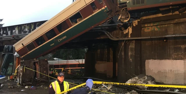 Пассажирский поезд оператора Amtrak сошел с рельсов и упал с моста из-за нарушения скоростного режима.