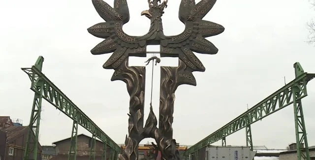 В польском городе Торунь устанавливают памятник жертвам Волынской трагедии. Скульптурная композиция представляет собой орла с крестом внутри, в центре которого - проткнутый вилами ребенок. Также частью монумента станет забор с насаженными на него головами. Об этом сообщает 112 Украина со ссылкой на Onet.pl.