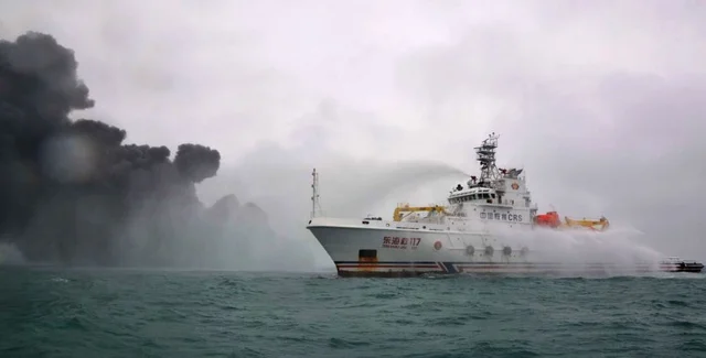 Представитель министерства рыболовства и океанов Южной Кореи Пак Сун-Донг сообщил, что десятки спасательных суден, несмотря на ветер, высокие волны и ядовитые испарения, продолжают поиски 31 моряка – на фоне опасений, что корабль может взорваться или затонуть.