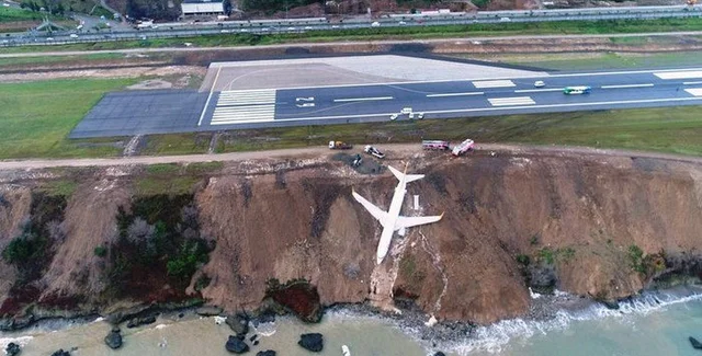 Пассажирский лайнер Boeing 737-800 с 162 пассажирами на борту и шестью членами экипажа остановился на обрыве. По счастливой случайности никто не пострадал, все люди были успешно эвакуированы.