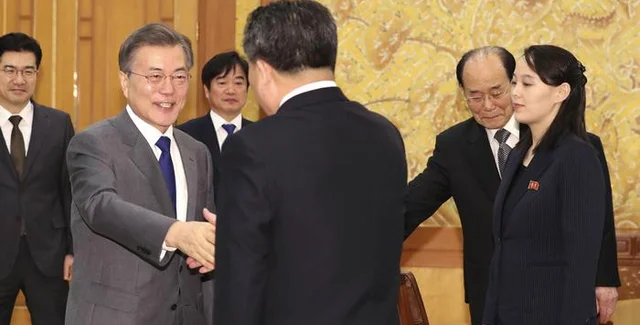 Встреча прошла в Голубом доме - президентском дворце. В ней участвовали формальный глава КНДР Ким Ен Нам и сестра северокорейского руководителя Ким Е Чжон. До начала переговоров Мун Чжэ Ин с улыбкой пожал руку представителям Пхеньяна. На телевизионных кадрах видно, что Ким Е Чжон держала в руках запечатанную голубую папку. Наблюдатели полагают, что в этой папке могло находиться личное послание от руководителя КНДР Ким Чен Ына.