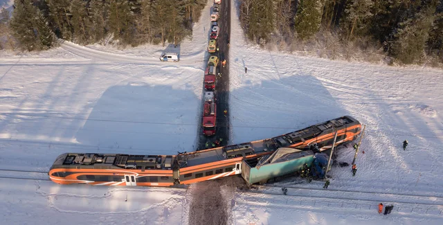 На место прибыл специальный спасательный поезд Eesti Raudtee, который помогает в ликвидации последствий ДТП.