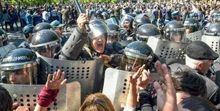 Как сообщалось, стычки начались в понедельник днем между манифестантами и полицией на проспекте Баграмяна в центре Еревана.