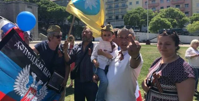 Участники акции, кроме портретов якобы своих родственников, участвовавших во Второй мировой войне, несли флаги РФ, Украины, Беларуси, Грузии и боевиков "Л/ДНР". Об этом рассказал председатель Союза украинцев в Португалии Павел Садоха, передает Громадське радіо.