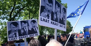 На подъезде к Праге в понедельник, 7 мая, активисты заблокировали проезд участникам российского байкерского клуба "Ночные волки", глава которых является приближенным к российским властям.