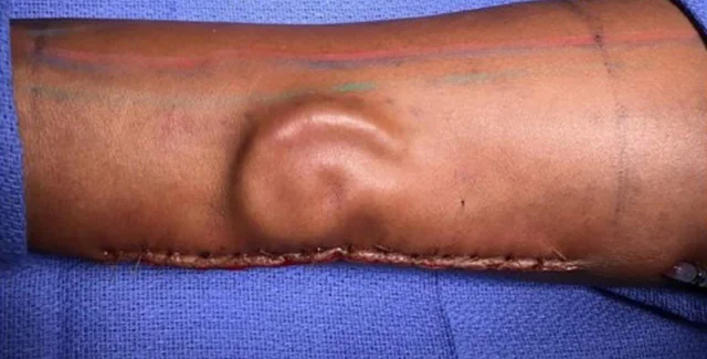 Пациентка Шамика Баррадж потеряла левое ухо в ДТП. Врачи из медцентра Уильяма Бомонта на военной базе города Эль-Пасо (штат Техас) извлекли хрящевую ткань из ребер и вырезали из нее новое ухо. Затем они поместили его в предплечье девушки, чтобы в нем проросли кровеносные сосуды.