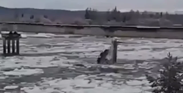 Местные жители обнародовали видео, на котором видно, как ледоход разрушает мост