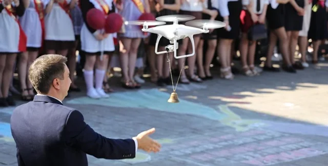 В городе Барановичи (Беларусь) на последнем звонке в лицее №1 использовали дрон вместо традиционной первоклассницы с колокольчиком. Об этом сообщает Intex-press.