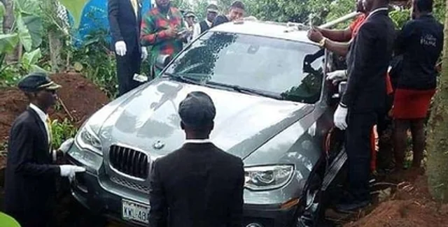 Зажиточный нигериец по имени Азубуике всегда обещал отцу, что однажды у того будет шикарная машина, но не успел исполнить обещание при жизни родителя. После кончины отца Азубуике купил новый кроссовер BMW X6 в демонстрационном зале местного дилера германского бренда, чтобы использовать эту машину вместо гроба.