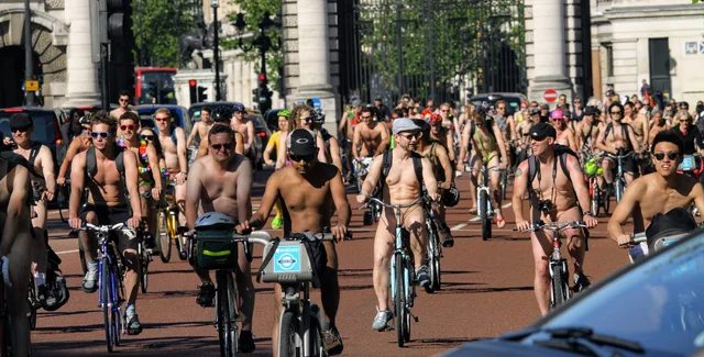 Триста полностью обнаженных активистов проехали через центр Брюсселя на велосипедах. Таким образом они выразили протест против загрязнения окружающей среды и отсутствия безопасности для велосипедистов.