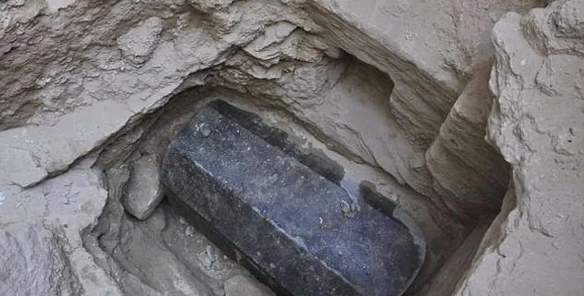 По словам археологов, высота черного гранитного саркофага составляет 185 сантиметров, длина -265 см и ширина - 165 см.