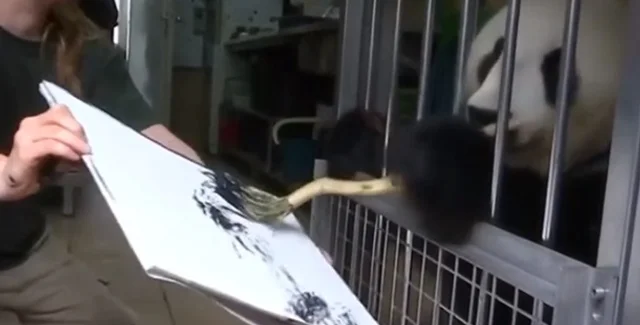 В зоопарке Вены (Австрия) панда научилась использовать кисть для рисования. Картины животного продаются примерно за 500 долларов за штуку.