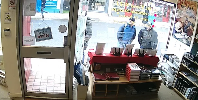 Камера ведеонаблюдения засняла, как Александр Петров и Руслан Боширов рассматривают коллекционные марки в Солсбери
