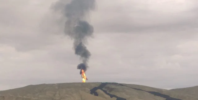 Отмечается, что извержение началось в 08:53 утра воскресенья. Через час в 09:59 было зарегистрировано второе извержение, которое продолжается в настоящее время. Высота языков пламени достигает 200-300 метров. Кроме этого, в эпицентре природного катаклизма зафиксированы трещины почвы глубиной до 40 метров.