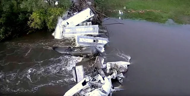 В штате Айова из-за обрушения моста случилась произошла железнодорожная авария.