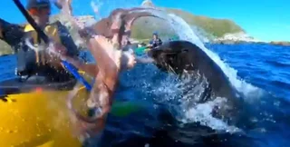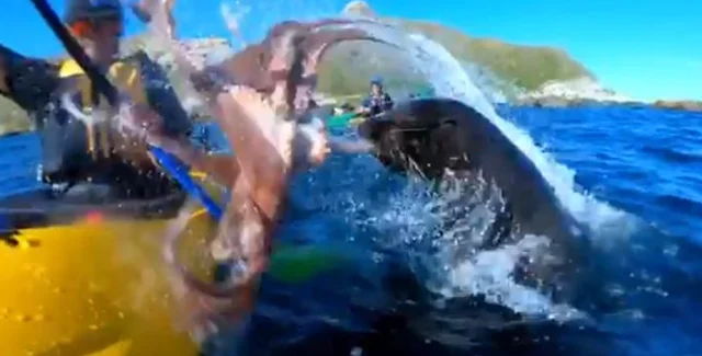 Спортсмены увидели в воде драку осьминога и тюленя, но не ожидали такой развязки