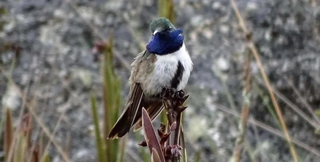 Они вырастают до 10-13 см и имеют яркое оперение на шее. Из-за этого птица получила название синегорлая горная звезда (Oreotrochilus cyanolaemus).