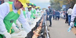 Шашлык из курятины длиной более 223 метров приготовили работники птицефабрики из города Макинск, Акмолинской области Казахстана. Этим самым они установили новый мировой рекорд.