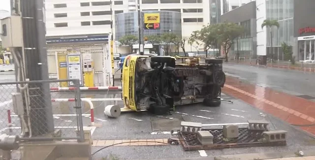 В Кагосиме известно о 10 пострадавших, среди которых мужчина, получивший травмы из-за опрокинутого ветром грузовика.