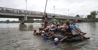 Привлекший к себе большое внимание караван, который отправился в путь из Гондураса, был остановлен мексиканскими властями на мосту на границе с Гватемалой, но многие пересекли воду вплавь или на самодельных плотах.