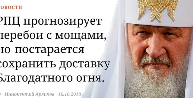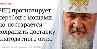 На приложенном скрине в заголовке одного из росСМИ говорится, что "РПЦ прогнозирует перебои с мощами, но будет пытаться сохранить доставку Благодатного огня".