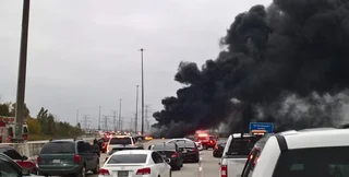 Автомобили стояли в пробке более трех часов. Черный столб дыма было видно за несколько километров.