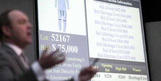 Так, форму космонавта, принадлежавшую Армстронгу, в которой он летал в космос, уже купили за 88 тысяч долларов. Среди исторических лотов - флаг, который Армстронг взял с собой на корабль "Apollo 11" во время путешествия на Луну полвека назад.