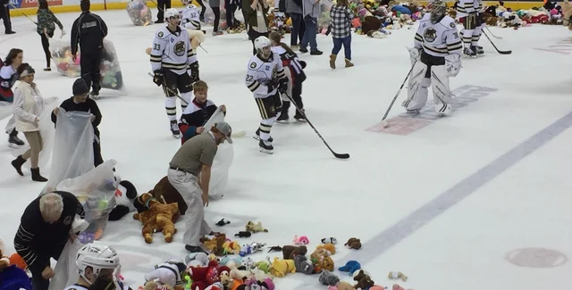 После хоккейного матча в США болельщики выбросили на лед тысячи мягких игрушек