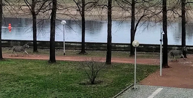 Зебры вырвались на свободу в немецком Дрездене еще в понедельник, 16 декабря. Животные содержались в цирке-шапито, установленном к Рождеству на набережной реки Эльба. Об этом пишет местное издание Deutsche Welle.