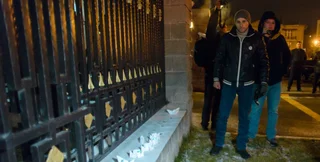 Отмечается, что участники акции принесли бумажные кораблики к зданию посольства РФ.